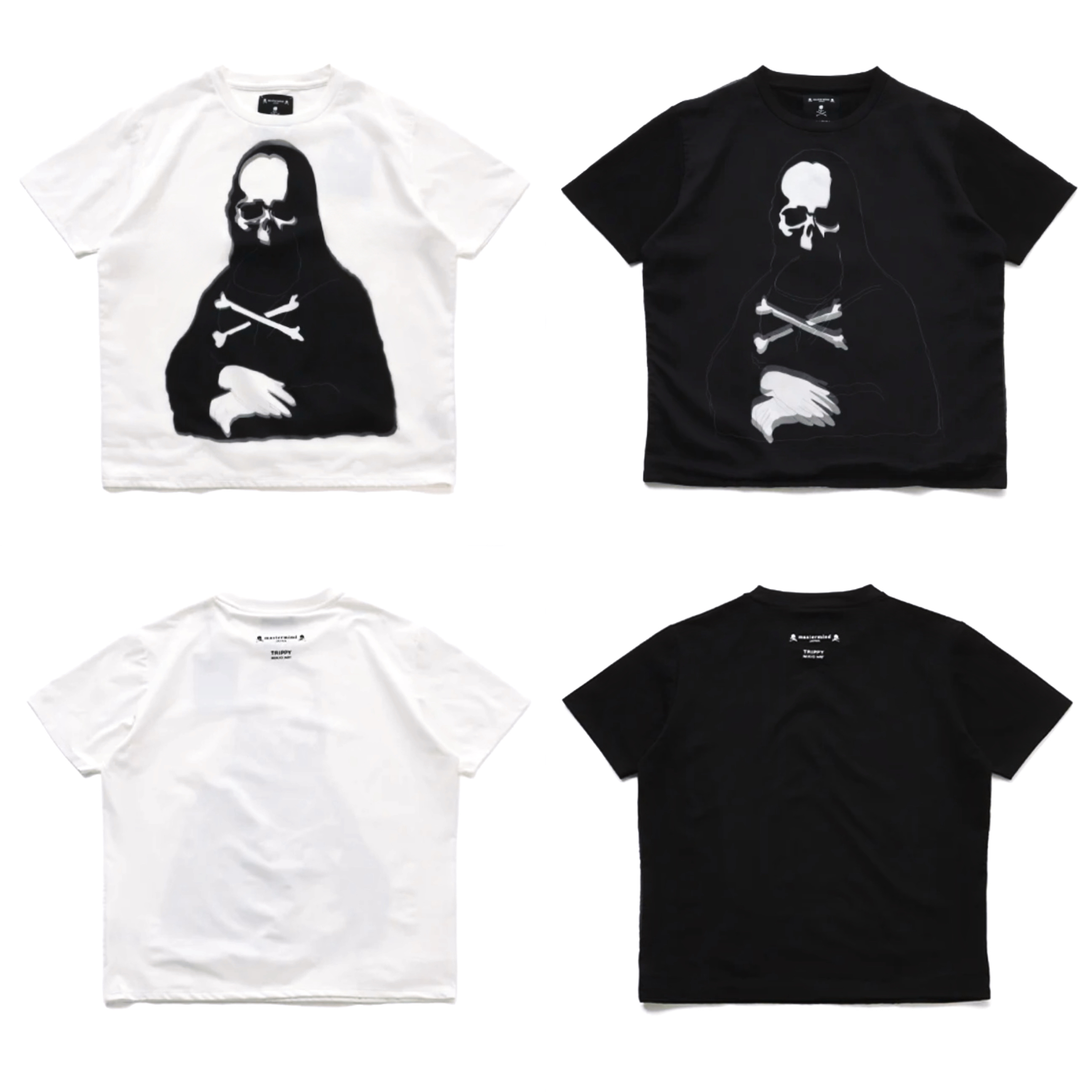 mastermind JAPAN x Trippy Mikio Art Tee Monaliza全黑、白2色各$1499,Anytime WhatsApp/WeChat 852 55260860,旺角西洋菜南街1A百寶利商業中心20樓2010-2011室